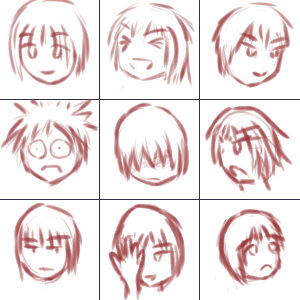 こういう顔の表情って、差分って言って、ベースとなる顔グラを一つ用意して、そこから変形するのが、多く使われるやり方のようです。